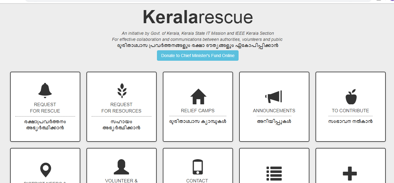 പേമാരിയില് മുങ്ങിനില്ക്കുന്ന കേരളത്തിന് സഹായകരമായി കേരള റസ്ക്യു മിഷന് വെബ് സൈറ്റ്. ആധുനിക സംവിധാനങ്ങള് ഉപയോഗപ്പെടുത്തി രക്ഷാപ്രവര്ത്തനം കൂടുതല് കാര്യക്ഷമമാക്കാനുള്ള ഇടപെടലുകളാണ് കേരള റസ്ക്യു മിഷന് വെബ് സൈറ്റ് ചെയ്യുന്നത്. ദുരിതാശ്വാസ പ്രവര്ത്തനങ്ങളും രക്ഷാ ദൗത്യങ്ങളും ഏകോപിപ്പിക്കുക എന്നതാണ്വെബ് സൈറ്റിന്റെ ലക്ഷ്യം.