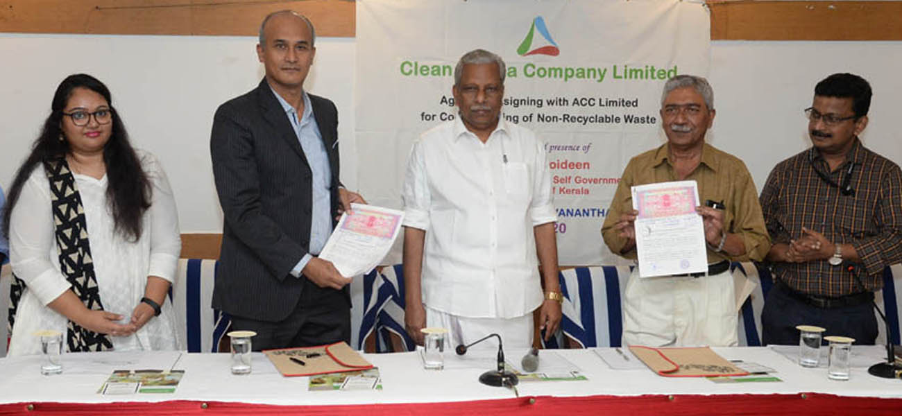 ക്ലീന് കേരള കമ്പനി മാനേജിംഗ് ഡയറക്ടര് പി. കേശവന് നായരും ജിയോ സൈക്കിള് ഇന്ത്യ നാഷണല് സെയില്സ് ഹെഡ് പ്രകാശ് ബറുവയുമാണ് കരാര് ഒപ്പിട്ടത്. പുനഃചംക്രമണം സാധ്യമല്ലാത്ത ചെരുപ്പ് , റെക്സിന് ,തെര്മോക്കോള്, ബാഗ് തുടങ്ങിയ പാഴ് വസ്തുക്കള് കരാര് പ്രകാരം കോയമ്പത്തൂര് മധുക്കരയിലെ എ.സി.സി സിമന്റ് ഫാക്ടറിയിലേക്ക് കൈമാറും. സിമന്റ് നിര്മ്മാണത്തിനുള്ള ഇന്ധനമായും അസംസ്കൃത പദാര്ത്ഥമായും ഇത്തരം വസ്തുക്കള് ഉപയോഗിക്കും. ചടങ്ങില് നഗരകാര്യ ജോയിന്റ് സെക്രട്ടറി ബല്രാജ്, നിധി നായര് തുടങ്ങിയവര് സന്നിഹിതരായി.