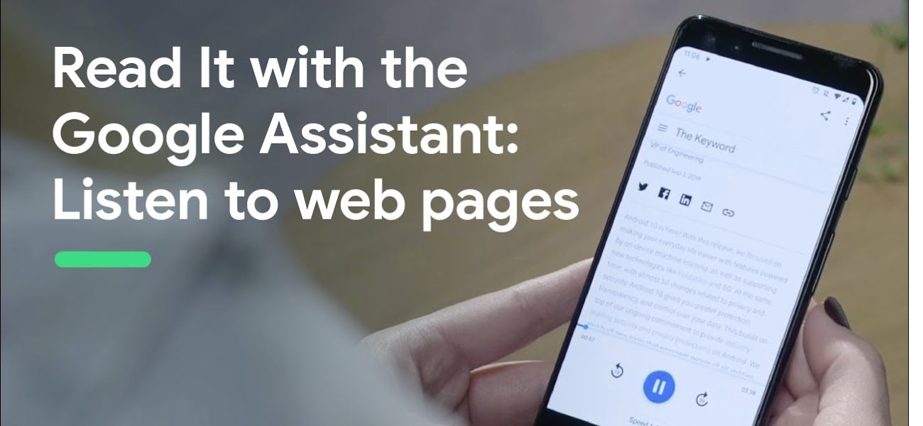 വെബ് പേജ് മുഴുവന് കേള്ക്കുന്നതിനായി 'റീഡ് ഇറ്റ്' എന്ന പുതിയ ഫീച്ചര് വതരിപ്പിച്ചിരിക്കുകയാണ് ഗൂഗിള്. ഇംഗ്ലീഷില് മാത്രമല്ല 11 ഇന്ത്യന് ഭാഷകളിളും ഗൂഗിള് നമുക്കായി വിവരങ്ങള് വായിച്ചുകൊണ്ടിരിക്കും എന്നതാണ് പ്രത്യേകത, ഈ മാസം തന്നെ സംവിധാനം ഉപയോതാക്കള്ക്ക് ലഭ്യമായി തുടങ്ങും. ഗൂഗിള് അസിസ്റ്റന്റില് നമുക്ക് അറിയേണ്ട കര്യത്തെ കുറിച്ച് പറഞ്ഞാല് മതി. ആവശ്യമായ വിവരങ്ങള് ഗൂഗിള് മുന്നില് എത്തിക്കും. അവശ്യമെങ്കില് വിവരങ്ങള് ഗൂഗിള് വായിച്ചുതരും.